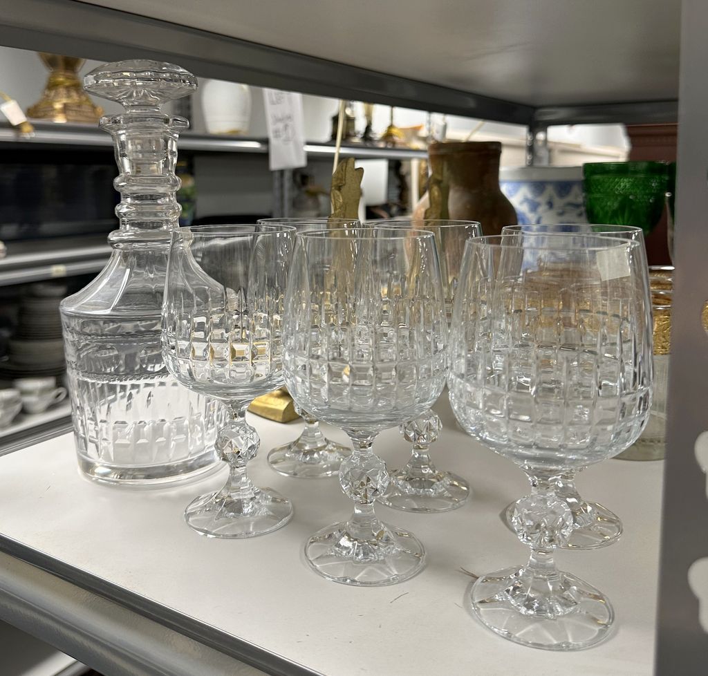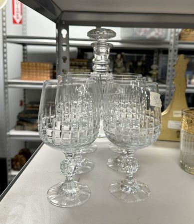 Crystal liquor Glass Set, decanter and glasses, Location Back Metal Shelves 22 Crystal liquor Glass Set, decanter and glasses, Location Back Metal Shelves 22