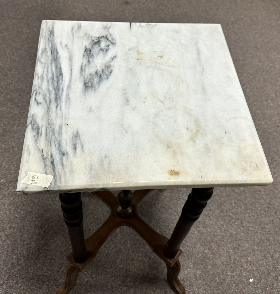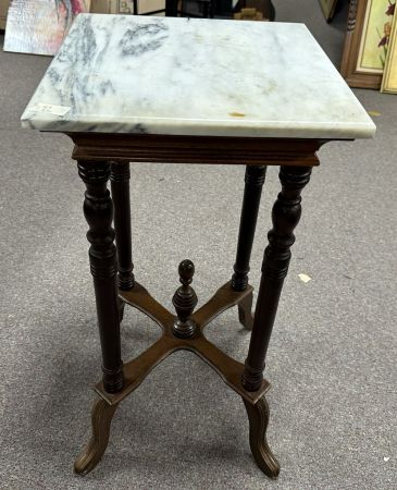 Late 20th Century Cherry Marble Plant Stand, white marble, 29"h., 14"w. Location Row 5 Late 20th Century Cherry Marble Plant Stand, white marble, 29"h., 14"w. Location Row 5
