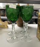 Four Cristal D Arques Durand Emerald Water Goblets , 8"h, Location Back Metal Shelves 22 Four Cristal D Arques Durand Emerald Water Goblets , 8"h, Location Back Metal Shelves 22