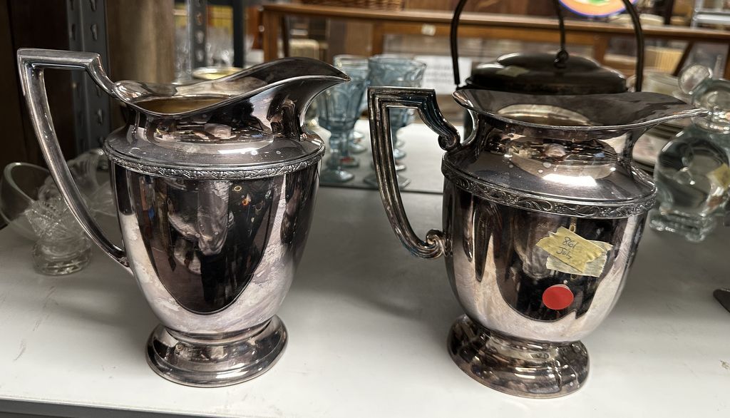 Rockford and Rogers Silver Plate Water Pitchers, Location Right Metal Shelves 24 Rockford and Rogers Silver Plate Water Pitchers, Location Right Metal Shelves 24