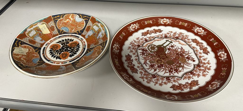 Sova and Sova Imari Style Bowl and Japan Charger, Location Back Metal Shelves 23 Sova and Sova Imari Style Bowl and Japan Charger, Location Back Metal Shelves 23
