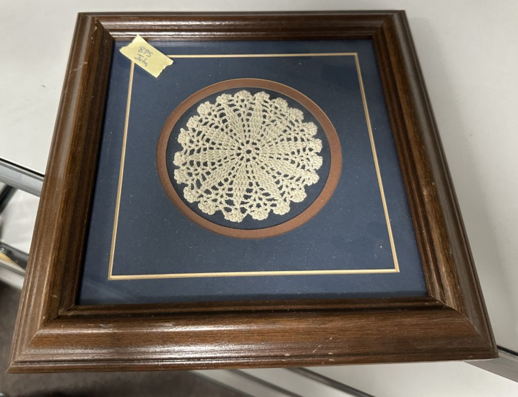 Framed Small Crochet Artwork, matted, 10" x 10", Location Back Metal Shelves 23 Framed Small Crochet Artwork, matted, 10" x 10", Location Back Metal Shelves 23