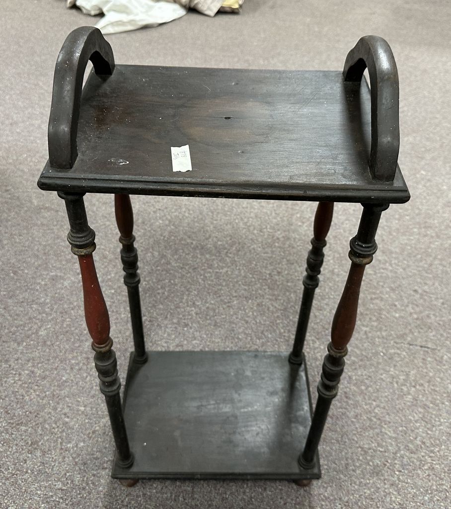 Vintage Small Accent table, handled, two tier, 22"h., 14"w. Vintage Small Accent table, handled, two tier, 22"h., 14"w.