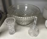 898 Vintage Pressed Glass Bowl, Vase, and Bell