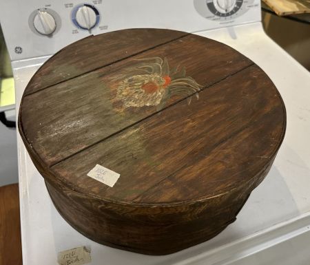 Painted Rooster Wood Sewing Box, 6"h., 15"w. Location Left Office Painted Rooster Wood Sewing Box, 6"h., 15"w. Location Left Office