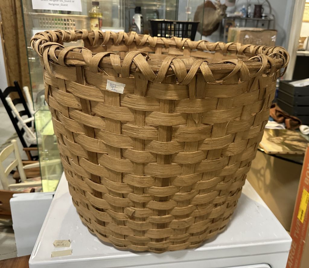 Vintage American Splint Oak Gathering Basket, 19"h., 25"w. Location Left Office Vintage American Splint Oak Gathering Basket, 19"h., 25"w. Location Left Office