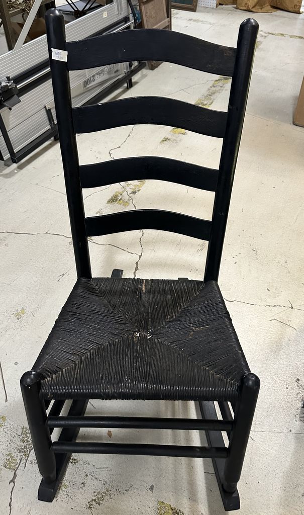 Black Painted Slat Back Rocker, woven seat, Location Left Office Black Painted Slat Back Rocker, woven seat, Location Left Office