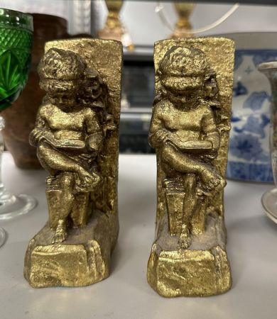 Gold Gilt Figural Bookends, 7"h, Location Back Metal Shelves 22 Gold Gilt Figural Bookends, 7"h, Location Back Metal Shelves 22