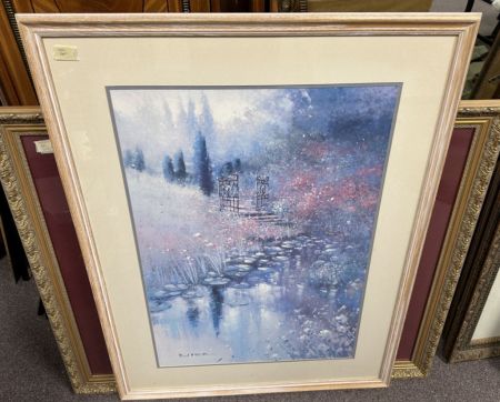Framed Print of Gate by Steam, matted, framed, 42"h., 32"w, Location Left Office 1 Framed Print of Gate by Steam, matted, framed, 42"h., 32"w, Location Left Office 1