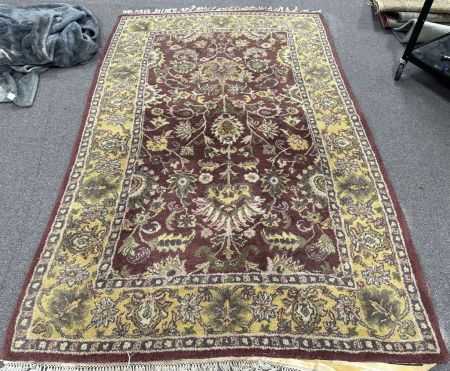 India 4'11 x 7'8 Red Area Rug, has damage on the fringe, needs cleaning. India 4'11 x 7'8 Red Area Rug, has damage on the fringe, needs cleaning.