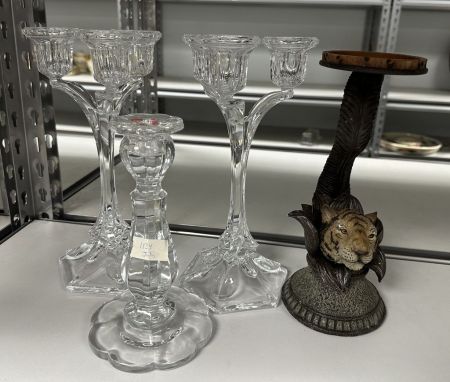 1134 Set of Glass Candle Holders and Lion Candle Holder