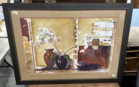 Large Framed Watercolor Print of Flowers, 31"h., 42"w. Location Left Office 1 Large Framed Watercolor Print of Flowers, 31"h., 42"w. Location Left Office 1