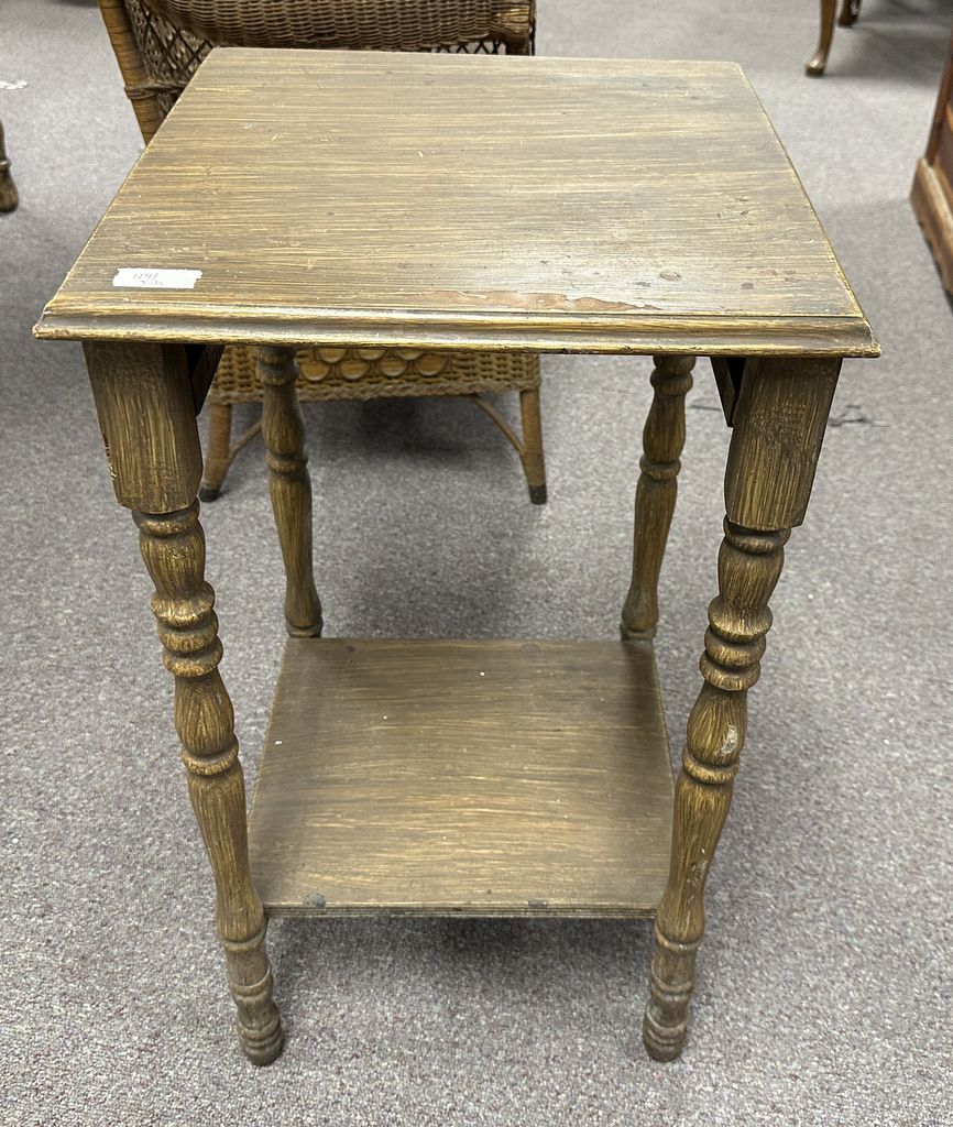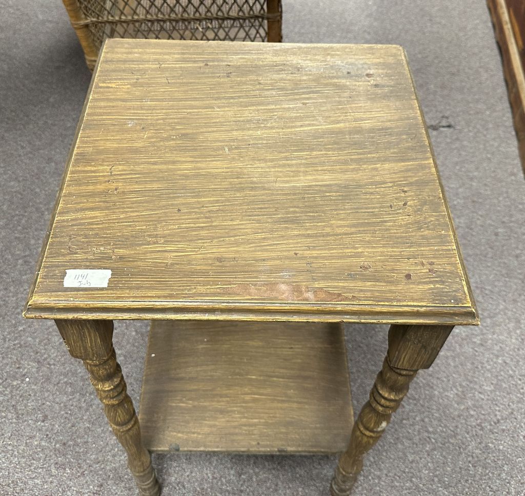 Vintage Painted Side Table, two tier, age wear, 29"h., 16"w. Location Row 0 Vintage Painted Side Table, two tier, age wear, 29"h., 16"w. Location Row 0