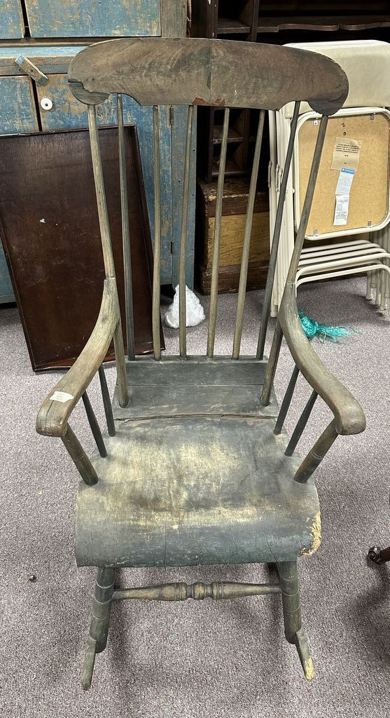 Primitive Hand Crafted Spindle Rocker, Location Row 1 Primitive Hand Crafted Spindle Rocker, Location Row 1