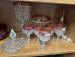 1149 Vintage Indiana Diamond Point Ruby Flash Set Goblets, Candy and Compote