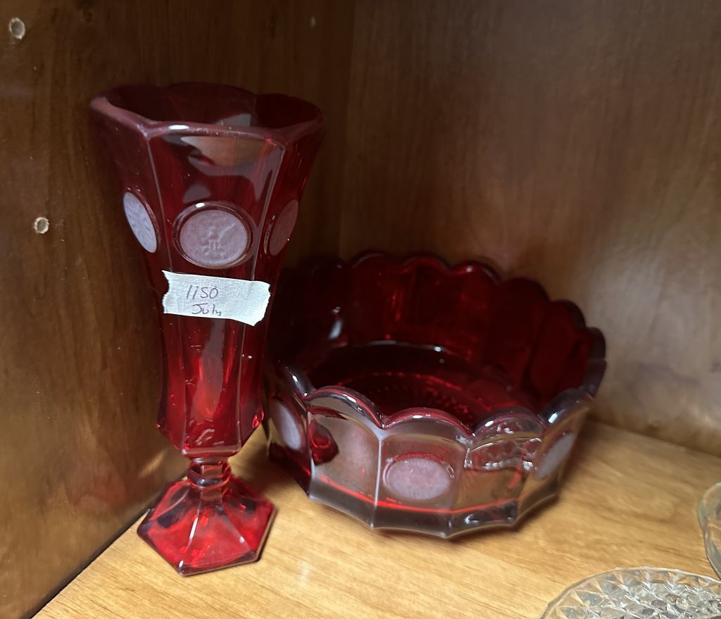 Fostoria Ruby Red Coin Bowl and Vase, Location Right Office 3 Fostoria Ruby Red Coin Bowl and Vase, Location Right Office 3