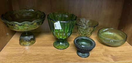 Green Glass Moon and Stars Compote, Depression Green Pedestal Bowl, Hobnail Compote, EO Brody Emerald Green Bowl,Location Right Office 3 Green Glass Moon and Stars Compote, Depression Green Pedestal Bowl, Hobnail Compote, EO Brody Emerald Green Bowl,Location Right Office 3