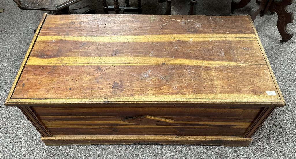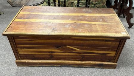 Vintage Cedar Trunk, finish is worn, top is off, 19"h., 44"w. Vintage Cedar Trunk, finish is worn, top is off, 19"h., 44"w.