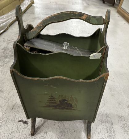Vintage Sewing Basket Magazine Rack, has damage handle, 25"h Location Row 2 Vintage Sewing Basket Magazine Rack, has damage handle, 25"h Location Row 2