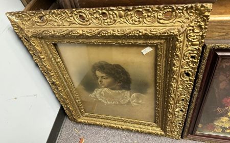 Antique Gold Gilt Woman Portrait, 30"h., 26"w. Location Right Office 1 Antique Gold Gilt Woman Portrait, 30"h., 26"w. Location Right Office 1
