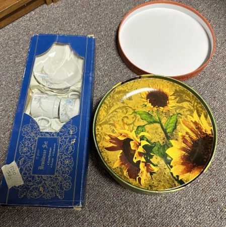 Box of Demitasse Set and Sunflower Plates, in boxes, Location Right Office 3 Box of Demitasse Set and Sunflower Plates, in boxes, Location Right Office 3