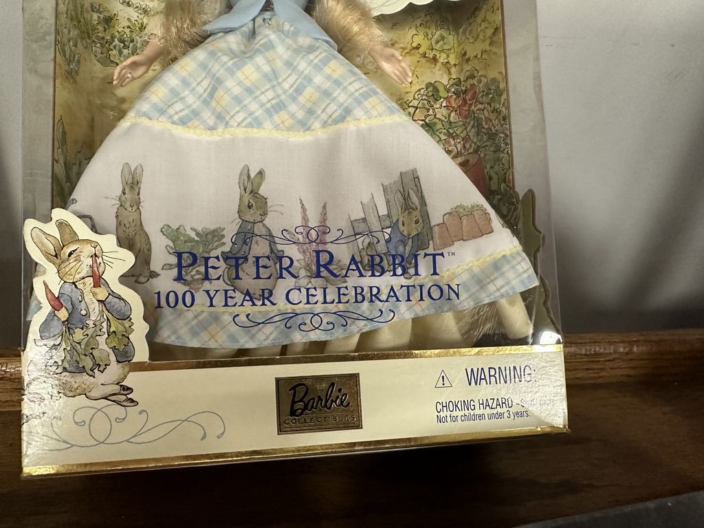 3 Collectible Barbie, Peter Rabbit 100 year, Hutch Back on Notre Dame, I Love Lucy, in Boxes, Location Right Wood Cart 3 Collectible Barbie, Peter Rabbit 100 year, Hutch Back on Notre Dame, I Love Lucy, in Boxes, Location Right Wood Cart
