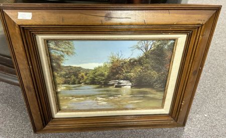 Dyke Framed River Print, 20"h., 24"w. Location Right Metal Shelves Dyke Framed River Print, 20"h., 24"w. Location Right Metal Shelves
