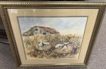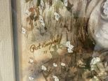 Signed Pat Folk Art Watercolor, matted, framed, 20"h., 22"w. Location Right Metal Shelves Signed Pat Folk Art Watercolor, matted, framed, 20"h., 22"w. Location Right Metal Shelves
