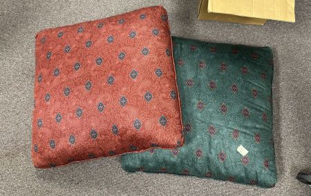 Two Decorative Throw Pillows, Location Right Metal Shelves Two Decorative Throw Pillows, Location Right Metal Shelves