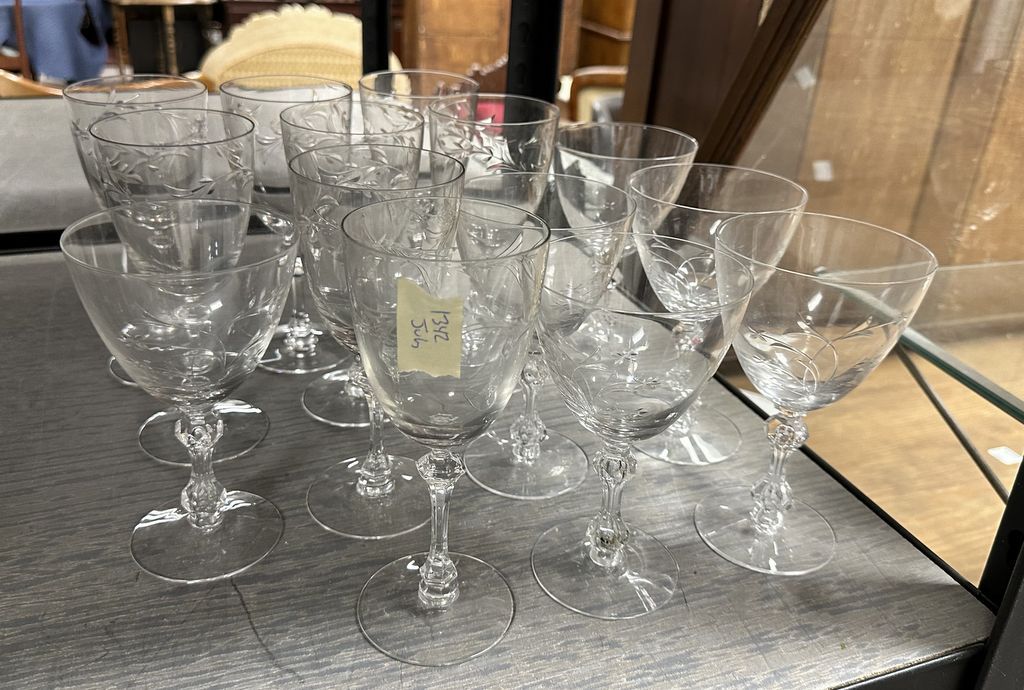 Group of Etched Wine Stems, Location Right Black Rack Group of Etched Wine Stems, Location Right Black Rack