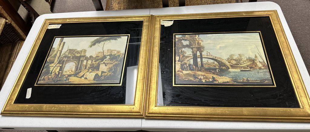 Pair of 20" x 21" Gold Gilded Framed Roman Prints, Location Right Office 3 Pair of 20" x 21" Gold Gilded Framed Roman Prints, Location Right Office 3