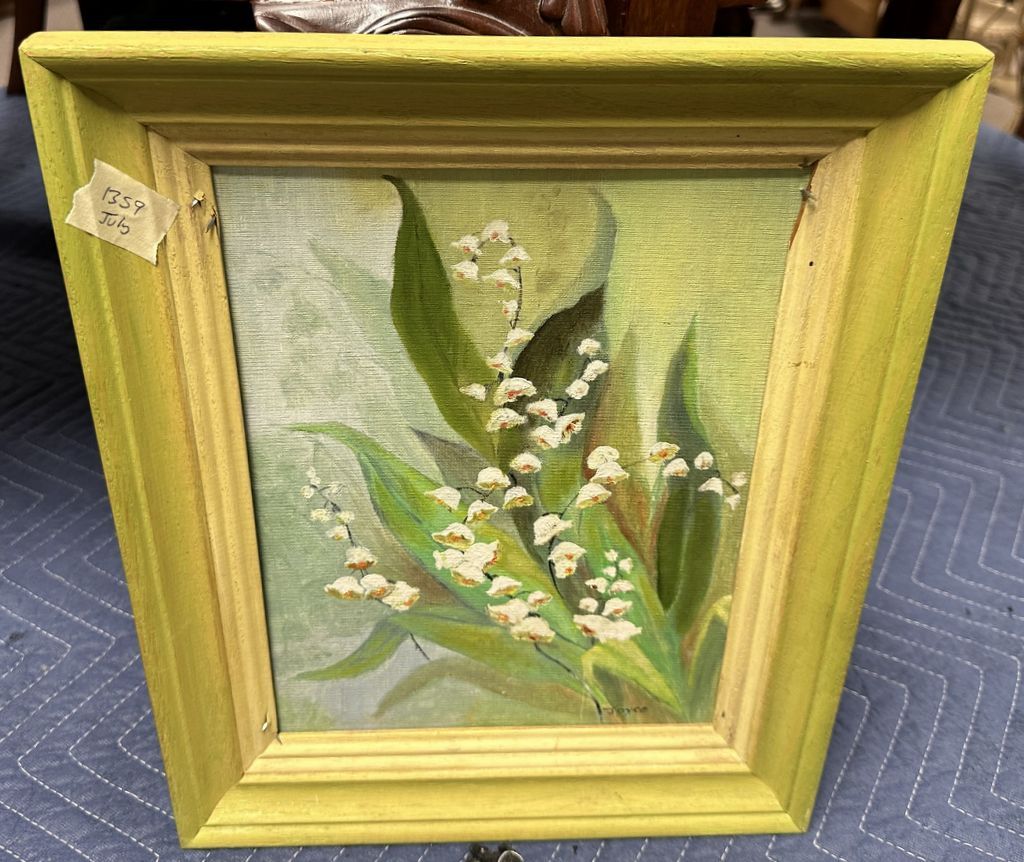 Signed Joyce Flower Painting, on board, framed, 15"h., 12"w, Location Left office 2 Signed Joyce Flower Painting, on board, framed, 15"h., 12"w, Location Left office 2