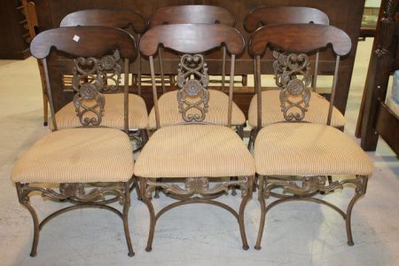 107 Set of Six Iron and Wood Dining Chairs (see table lot# 0103)