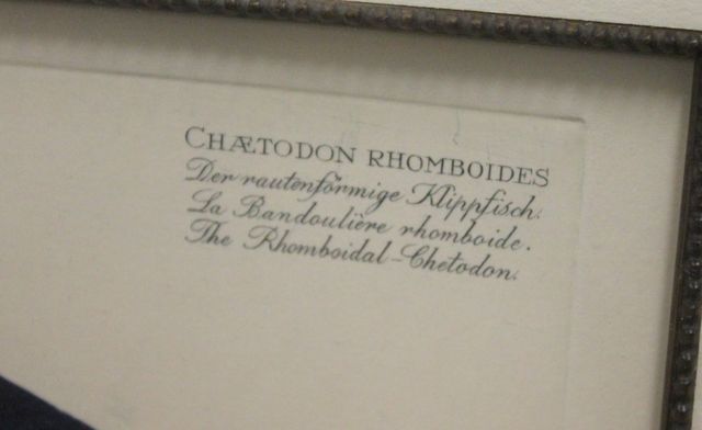 Pair of Lithographs of Fish by Ludwig Schmidt; Ostracion Trigonus and Chatodon Rhomboides; 27" w., 21 1/2" h. Pair of Lithographs of Fish by Ludwig Schmidt; Ostracion Trigonus and Chatodon Rhomboides; 27" w., 21 1/2" h.