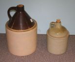 Whiskey Jug Along(light brown, 12" h., 7" dia.) with #3 Whiskey Jug (10" dia., 18" h.) Whiskey Jug Along(light brown, 12" h., 7" dia.) with #3 Whiskey Jug (10" dia., 18" h.)
