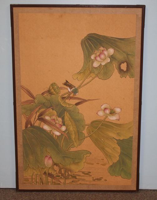 "Art of Birds" Hand Painted on Paper Then Applied to Board; 24" w., 36" h. "Art of Birds" Hand Painted on Paper Then Applied to Board; 24" w., 36" h.