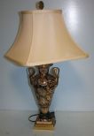 Painted Urn Shape Lamp with Swan Handles; 29" h. Painted Urn Shape Lamp with Swan Handles; 29" h.