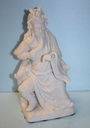 White Porcelain Figurine of Man with Scroll, made in Japan; 11" h. White Porcelain Figurine of Man with Scroll, made in Japan; 11" h.