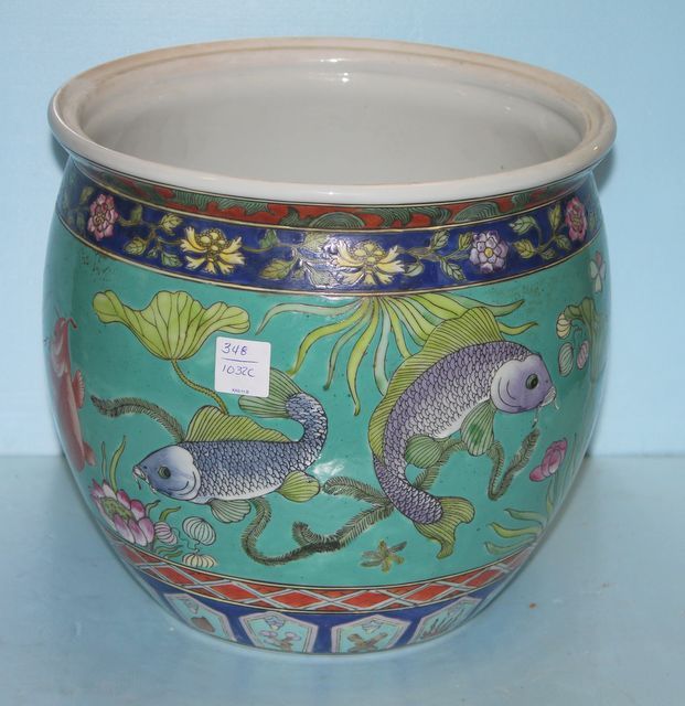 Maitland-Smith Painted Porcelain Fish Bowl; 10 5/8" dia., 10" h. Maitland-Smith Painted Porcelain Fish Bowl; 10 5/8" dia., 10" h.