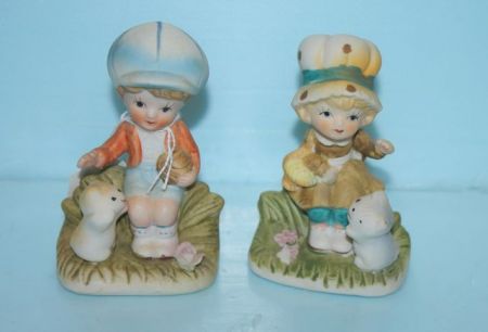 Pair of Homco Bisque Figurines, Girl and Boy each with a dog; 3 1/2" h. Pair of Homco Bisque Figurines, Girl and Boy each with a dog; 3 1/2" h.