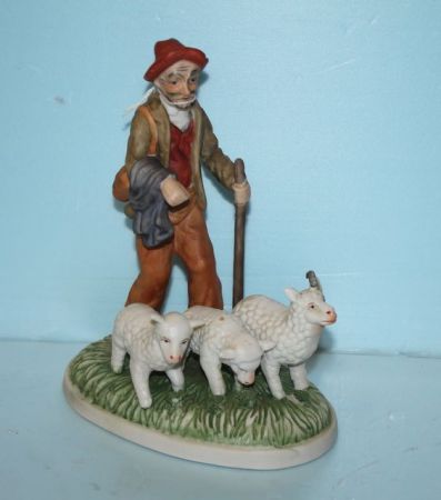 369 Bisque Figurine of Shepherd with Sheep
