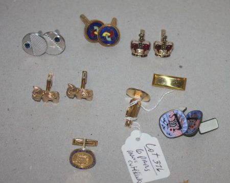376 Six Pairs of Enameled and Gold Plated Vintage Men's Cufflinks