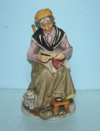 Bisque Figurine of an Elder Lady and Dog; 8 1/2" h. Bisque Figurine of an Elder Lady and Dog; 8 1/2" h.
