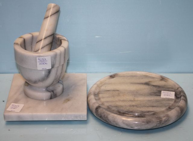 Square Marble Trivet (4"), Round Marble Trivet (6"), and Mortise (4 1/2" h.) Square Marble Trivet (4"), Round Marble Trivet (6"), and Mortise (4 1/2" h.)