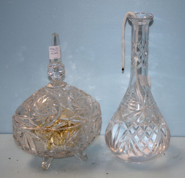 436 Cut Glass Vase and Cut Glass Covered Dish