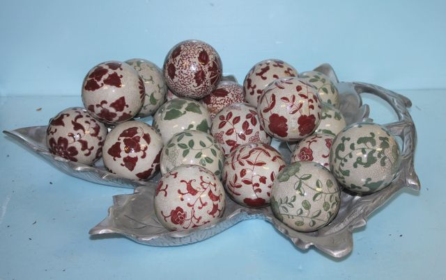 Large Metal Silver Tray (21" w.) with Nineteen Porcelain Balls Large Metal Silver Tray (21" w.) with Nineteen Porcelain Balls