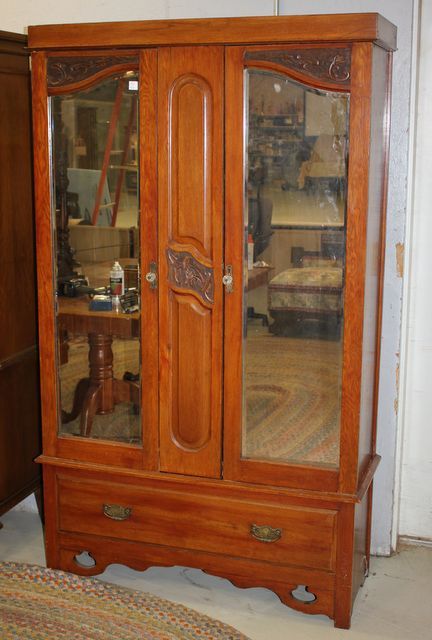 452 Mahogany Double Door Beveled Mirror Armoire with Drawer