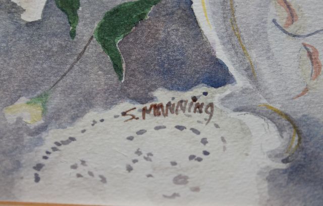 455 Watercolor of "Flowers and Vase", signed S. Manning