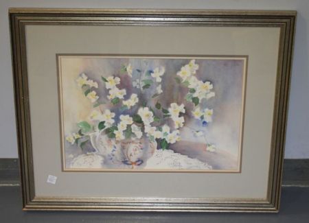 Watercolor of "Flowers and Vase", Original, signed Sudie Manning, framed; 25" h., 32" l. Watercolor of "Flowers and Vase", Original, signed Sudie Manning, framed; 25" h., 32" l.