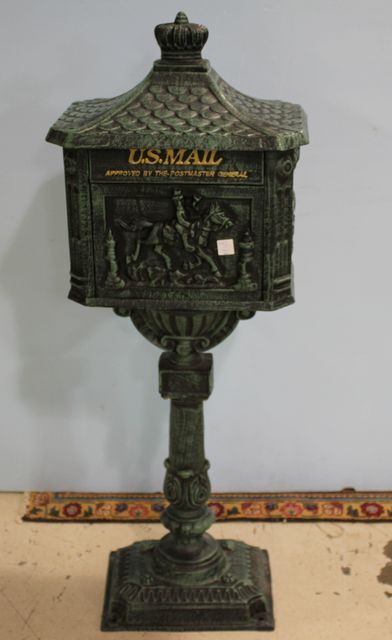 Cast Iron Mailbox, (does not have key but is not locked); 46" h., 17" l., 12" d. Cast Iron Mailbox, (does not have key but is not locked); 46" h., 17" l., 12" d.